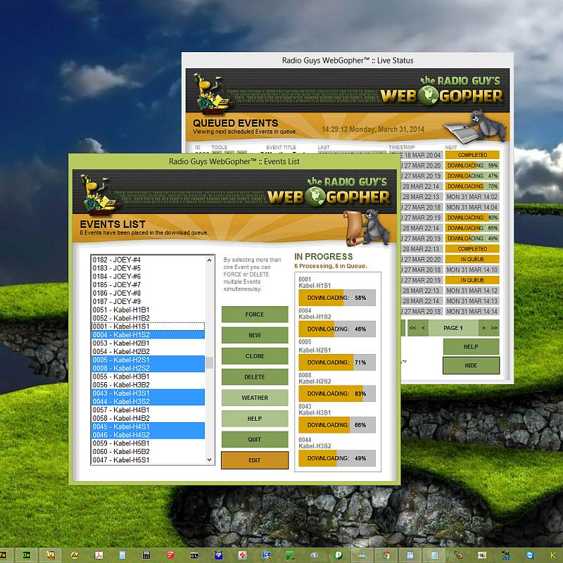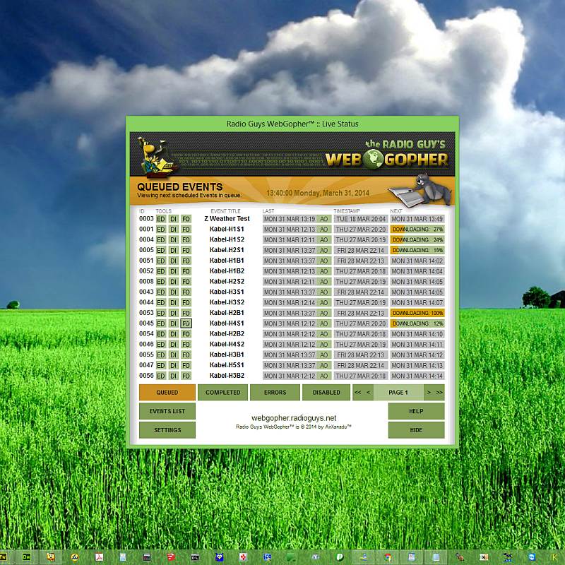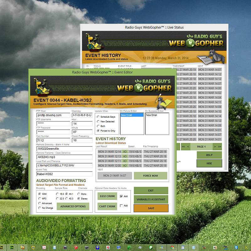 In today's broadcast world a lot of program content from the web needs to be downloaded daily, converted, renamed, and stored so your listeners can enjoy it. That means lots of tedious staff time repeating the same tasks day after day, week after week. With WebGopher enter these events once, and forget it. Your programs are downloaded, converted, and stored automatically, forever.